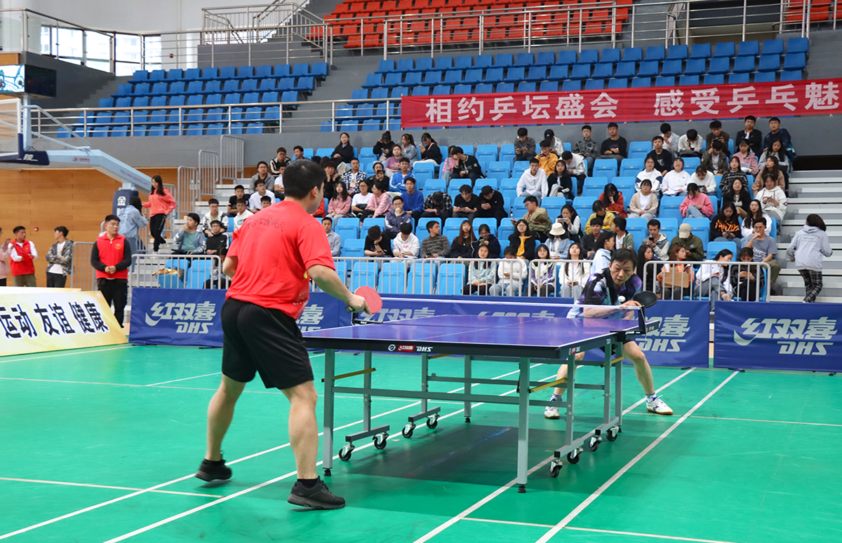 Prof. Xie is one of engineer on the FAST project, Five-hundred-meter Aperture Spherical Radio Telescope, located in Pingtang Guizhou, also known as “The Space Eyes Of China”. Alone the visit, he gave a lecture to the audiences on campus about astronomical telescope and radio telescope, and analyzed some scientific research results through the space eyes and some future prospecting. After the lecture, the table tennis squad played a friendly game with the team of Moutai Institute.
