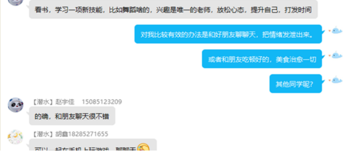 旅游管理系、食品科学与工程系以“5.25心理健康节”为契机,召开了心理健康主题班会。其中旅游管理系结合学生在上海实习期间,恰逢上海疫情爆发,亲历居家隔离的背景,通过线上班会的形式,及时关心了解学生的具体情况和心理状态,帮助大家学会疏导不良情绪,并引导大家严格遵守疫情防控规定,落实疫情防控要求,做好个人防护工作,同时龚婷婷老师以学生为中心,通过引导学生自主分享调适心理的有效办法,对学生加强心理健康教育,学生表示,这段时间,很感谢学校老师和同学们无微不至的关心,也分享了他们通过运动、看书、和朋友聊天等方式调节自我情绪,排泄不良情绪的方法。