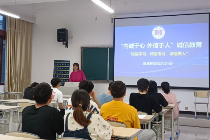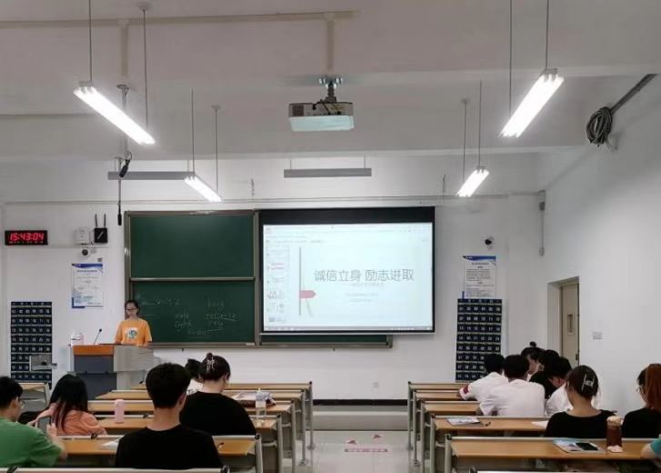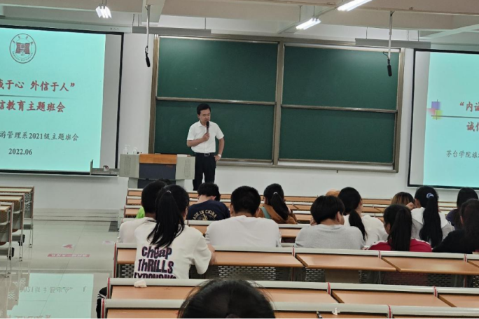 各系结合“考风考纪诚信教育”活动,开展诚信主题班会,酿酒工程系赵新城老师通过诚信案例讲解、诚信故事分享,引导学生筑牢诚信意识并外化为平时的自觉行为;工商管理系赵媛媛老师从诚信的历史逻辑、价值逻辑、时间逻辑三方面进行阐述,帮助学生理解诚信内涵、认同诚信价值、践行诚信行为;旅游管理系刘泽畅老师严肃强调考风考纪的重要性,他指出:“树道德之新风,立诚信之根基,是当代大学生义不容辞的责任”。会后,各系结合实际签署了《考试诚信承诺书》。