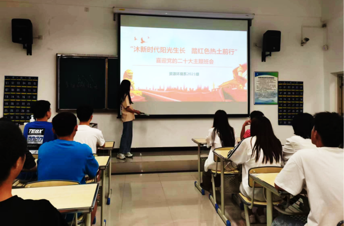 在党的二十大即将召开之际,各系纷纷开展“沐浴阳光生长 踏红色热土前行”喜迎党的二十大主题教育班会。