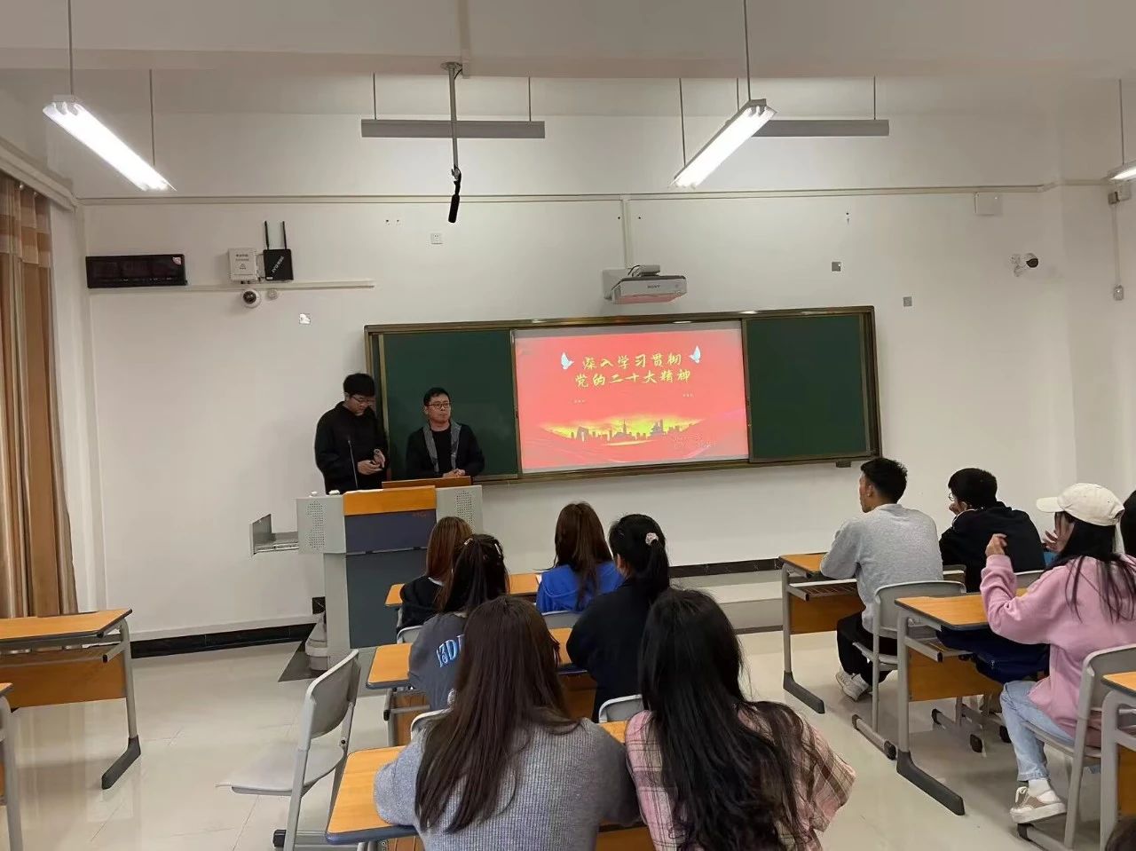 2023年4月, 酿酒工程系辅导员刘旭波老师及所带19级各班班长开展两次党的二十大精神宣讲,宣讲涉及人数总计400余人。刘旭波老师带领同学们了解党的十九大以来五年的工作以及回顾党的十八大以来新时代十年的伟大变革,结合贵州十年来发展历程,引导学生切身感受到祖国的繁荣进步。