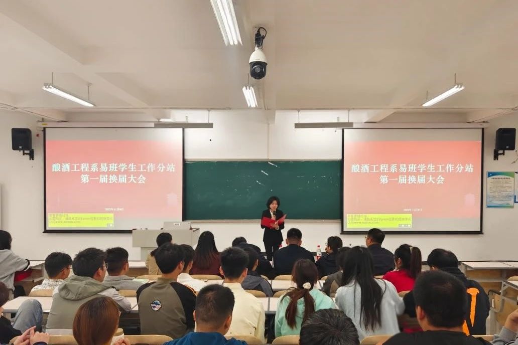 近日,酿酒工程系易班学生工作分站换届大会在A2教学楼111室开展。出席换届大会的老师有酿酒工程系党总支副书记刘晓晓,易班学生工作分站现任指导老师郭蓉,酿酒工程系辅导员吕享、罗粒、赵新城、王瑶。
