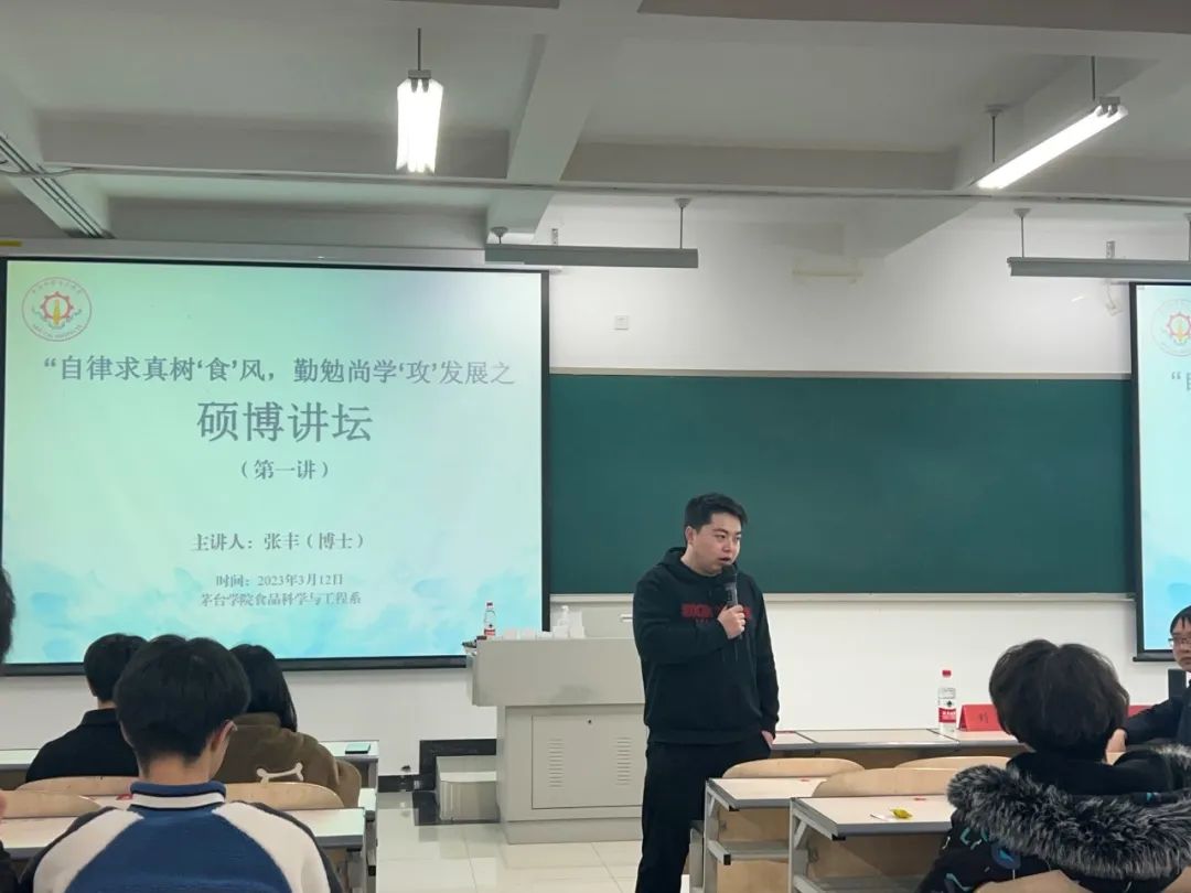 2023年3月12日,食品科学与工程系“自律求真树食风,勤勉尚学攻发展”之硕博讲坛顺利开讲。本次活动邀请到食品科学与工程系主任张丰博士主讲,党总支副书记刘秋老师、团总支书记卢鸿老师出席,各年级学生代表参加。