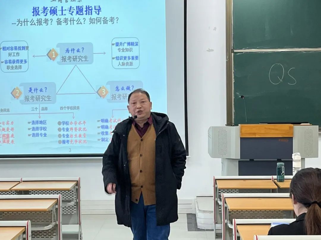 田景仁教授主要从“为什么要考研?”,“备考什么”,“如何备考”这三个部分为大家讲解了有关考研的准备事项,让同学们对考研不再只是概念上的了解,而是更深的认识,从而激发同学们考研的热情和决心。