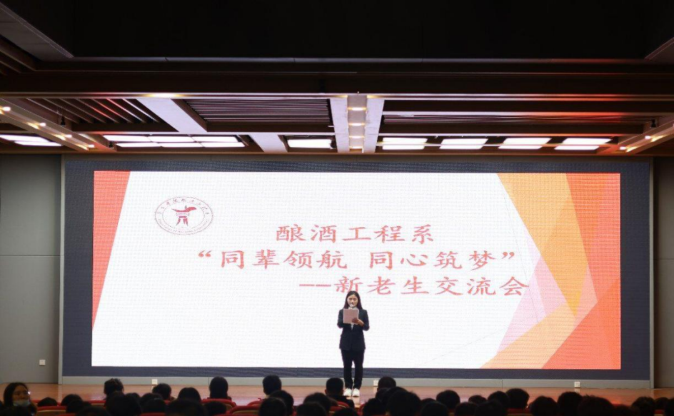 为做好新生入学教育工作,引导2022级新生树立发展目标,明确前进方向,酿酒工程系于10月30日在图书馆报告厅举行“同辈领航 同心筑梦”新老生交流会。酿酒工程系党总支副书记黄华老师,辅导员赵新城老师,2019级优秀学生代表王庆云、郑丹仪、章小芬、易萍同学,2022级全体同学参加交流会。