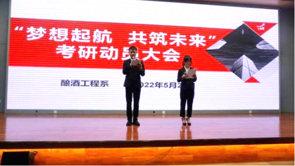 厉兵秣马,未雨绸缪。为提高2019级学生考研热情,调动学生考研积极性,帮助学生认清考研新形势,树立考研信心,营造良好的考研氛围。5月20日中午,酿酒工程系在图书馆报告厅召开“梦想起航·共筑未来”考研动员大会。参与此次活动的老师有酿酒工程系党总支书记何惠,郭举教授,吴叔娥老师,刘晓晓老师。