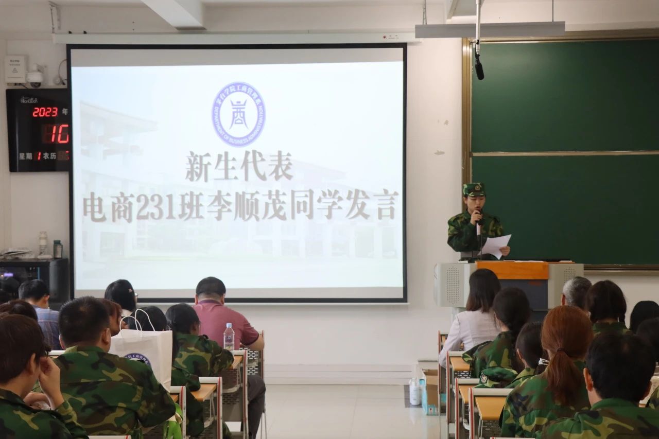新生代表李顺茂同学发言,作为一名刚入学的新生,应尽适应大学生活、设定自己的奋斗目标,不能像无头苍蝇一样,深处迷茫之中,更应合理定位,切忌规划过高,以免给自己带来巨大的压力,同时应严于律己、抵制诱惑、加强自身修养、全面发展,努力让自己变得更好。
