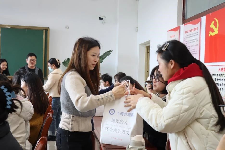 工商管理系老师为考研学习发放考研加油包