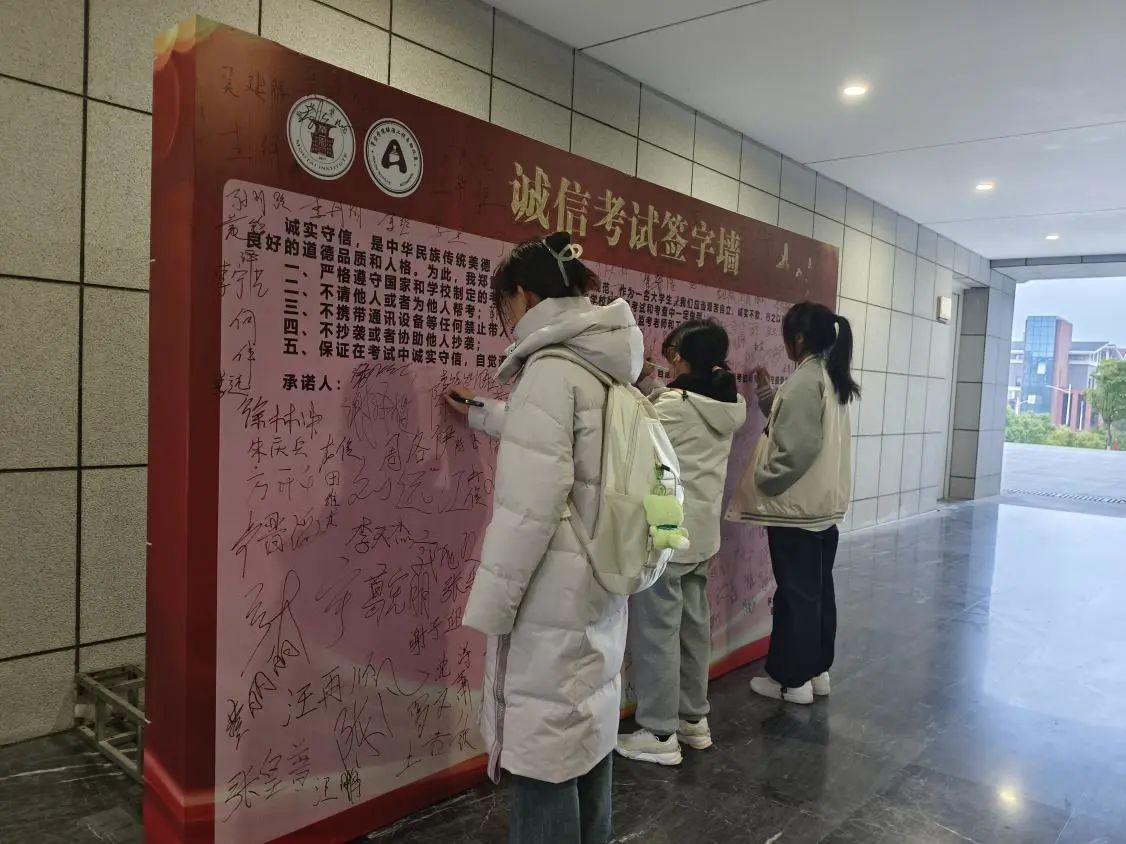 “诚信教育书法展”作品内容紧扣诚信教育主题,弘扬正能量,传承了中华优秀传统文化,体现了酿酒工程自动化系“书写规范字”行动倡议。同时,在书法展板旁边设置“诚信考试签字墙”,引导学生端正学习态度,强化“诚信光荣,不诚信可耻”的观念,在考试中诚实守信,自觉遵守考试有关规定,以良好的考风响应学校号召,推进学风建设。”签名活动进一步加强了同学们的诚信意识。