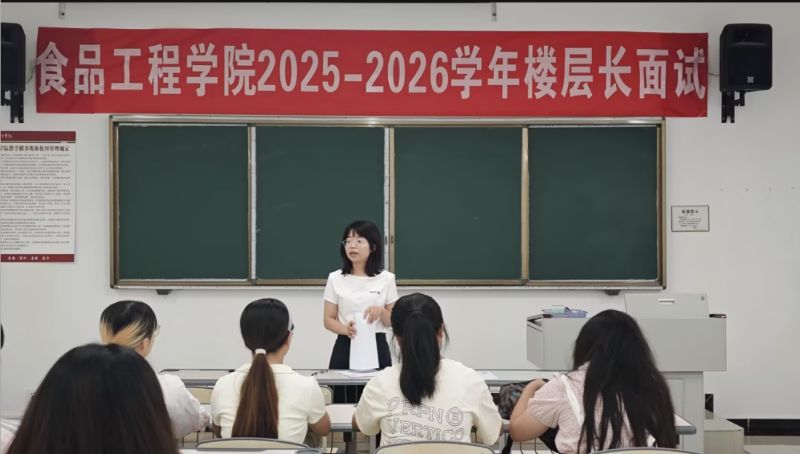 为进一步加强学生宿舍管理,营造文明有序、积极向上的寝室文化氛围,助力学院“一站式” 学生社区建设,近期,食品工程学院在报国楼顺利举办了2025-2026学年楼层长面试选拔活动,众多同学踊跃参与,展现出高度的热情与责任感。学院党总支副书记钟舒、各年级辅导员出席活动。