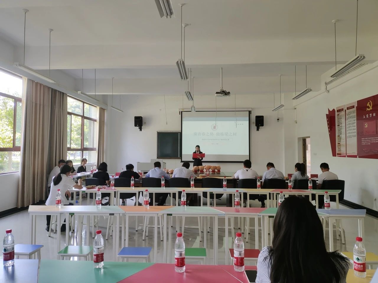 先进班集体候选班级就班级基本情况、所获荣誉奖项、班级管理制度、学风建设、班级活动等方面进行了精彩汇报,展示了今年会优秀班集体的凝聚力与向心力。