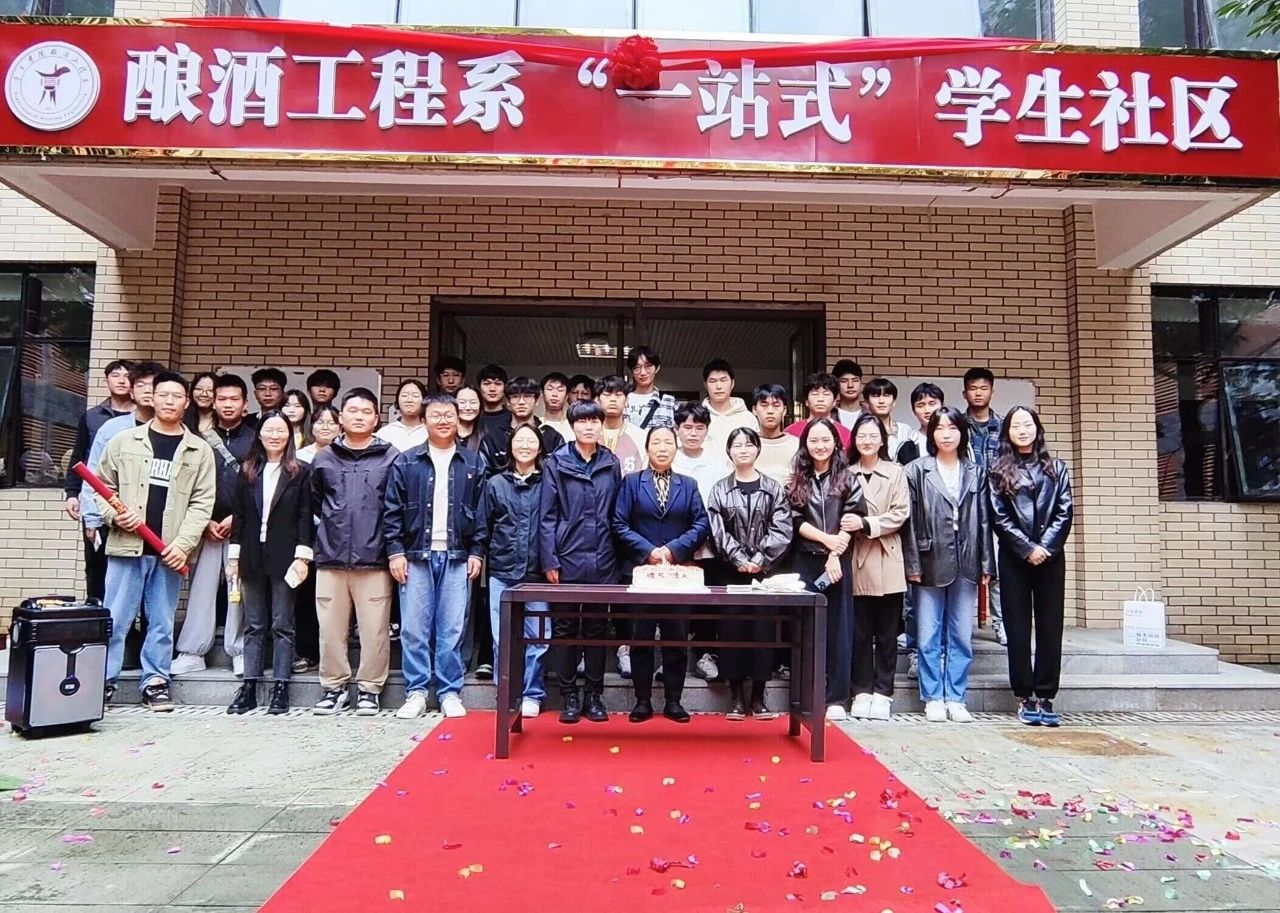 酿酒工程系“一站式”学生社区的启用随揭牌正式开始。在场老师、嘉宾及宿管阿姨共同主刀切下蛋糕,共同庆祝酿酒工程系“一站式”学生社区顺利建成,启用仪式圆满成功。