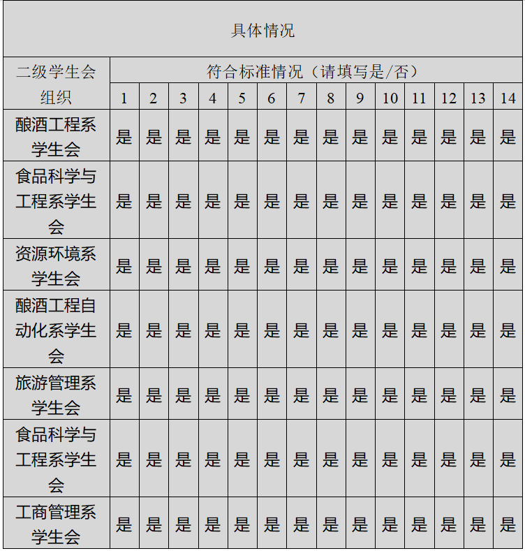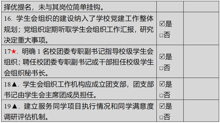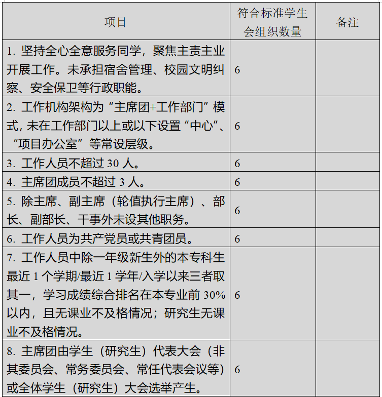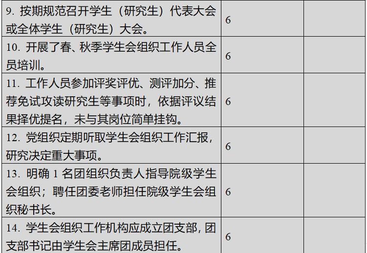 (二)二级学生会组织(含二级院系、书院、分校区等学生会、研究生会)改革自评表