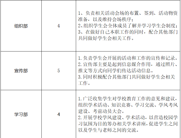 第二十条 学生会实行主席团分工负责制。主席团下设工作部门,各工作部门实行部长负责制。