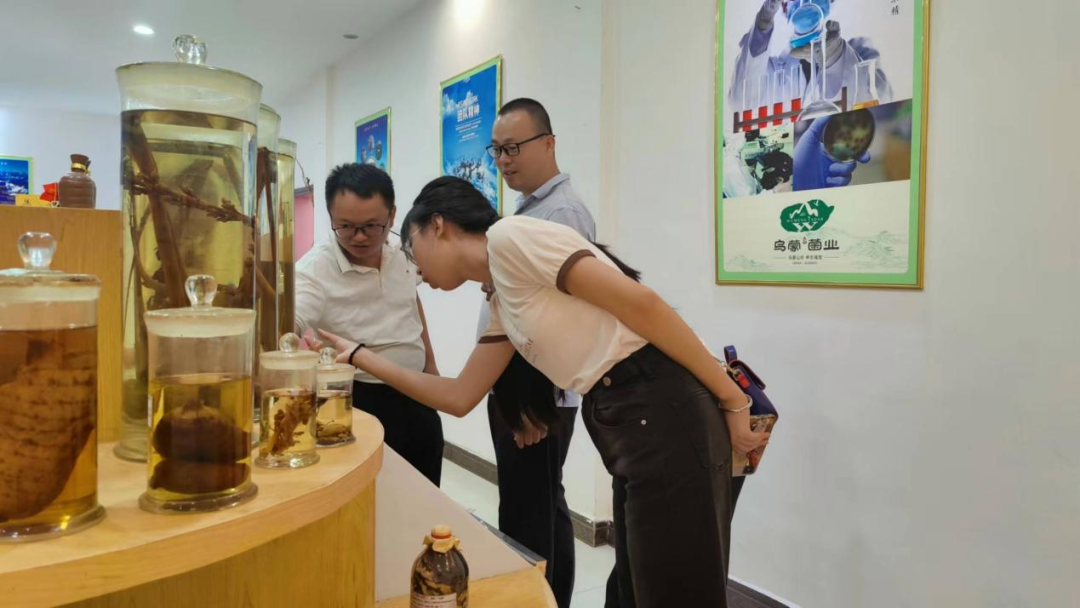实践团队在贵州乌蒙腾菌业有限公司董事长张光文与技术员潘成的带领下,来到大方天麻研究所展览室参观,在参观过程中,团队成员了解到天麻质地较为坚实、沉重,环纹较少,顶芽较小,断面较均一明亮,特异气味较浓郁。同学们还了解到天麻内部有含量较高的天麻素,丰富的微量元素形成了较为独特的内在特征,对治疗头目眩晕、头风、头痛等症状有较为显著的效果。