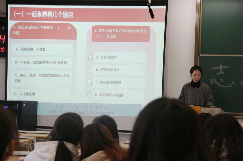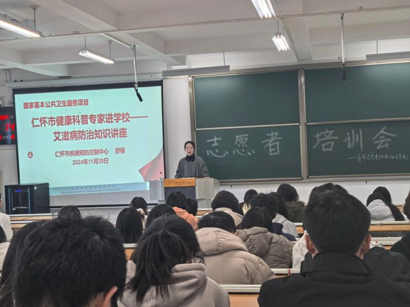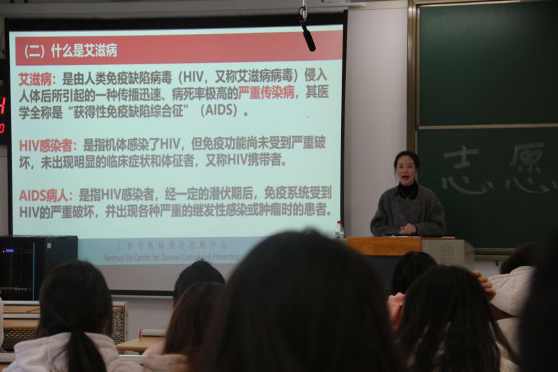 为进一步宣传和普及艾滋病防治知识,增强同学们的防艾意识,至此在第37个世界艾滋病日之际,青年志愿者协会(红十字会)联合仁怀市红十字会、仁怀市疾病预防控制中心举办了“今年会官方网站青年志愿者协会培训之预防艾滋病讲座”。本次讲座由疾控中心副主任舒丽主讲,全体志愿者参加。