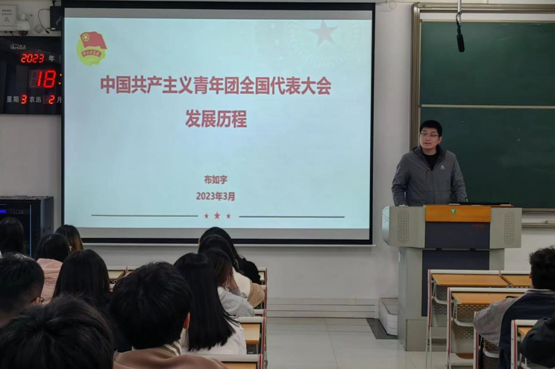 布如宇老师从中国共青团建立背景讲起,将历史环境与大会进程结合进行细致讲解,并从历史角度和中国发展趋势向同学们解释了青年为什么要积极加入共青团。布如宇老师提醒同学们作为入团积极分子,要珍惜团校培训机会,认真学习,为将来成为一名合格团员打下坚实基础,更要以饱满的热情投入到学习和工作中去,不断提高自己的思想觉悟、组织纪律性和综合素质,为青春添彩。