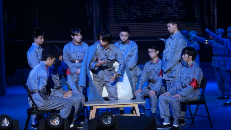 同学们的演绎,宛如一部生动的历史长卷在眼前徐徐展开,通过精心的编排,把遵义会议的场景鲜活地重现。从同学们坚定的眼神、有力的动作中,能真切感受到革命先辈们在关键时刻的果敢抉择与崇高信念,让历史不再是冰冷的文字记录,而是化作有血有肉、可触可感的精神力量,深深烙印在每一位观众心间,激发起大家对革命先辈的敬仰之情与传承红色基因的使命感。