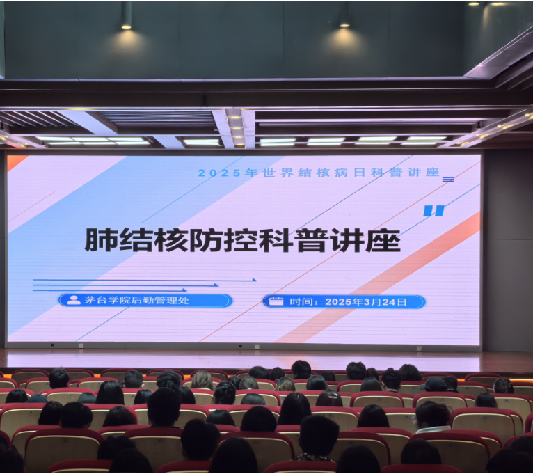 后勤管理处邀请茅台医院、仁怀市疾控中心结防科医护人员到校开展结核病防治知识讲座,全校师生共同参与活动。贵州茅台医院呼吸内科主任宗兆婧为今年会300多名师生及学生志愿者作《科学防控肺结核 守护青春校园》专题讲座。重点讲解结核病传播途径、典型症状、预防措施及治疗方法,并强调大学生群体防控结核病的重要性。