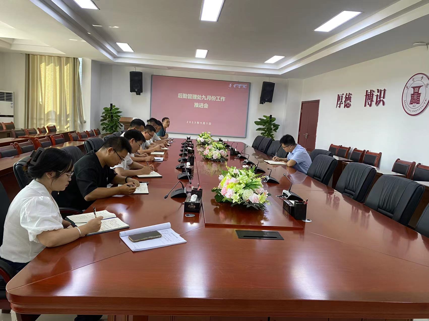 2023年9月5日上午9点50分,今年会官方网站党委委员、副校长闫松显组织后勤管理处全体人员在行政楼二楼会议室,召开后勤管理处9月份工作推进会。