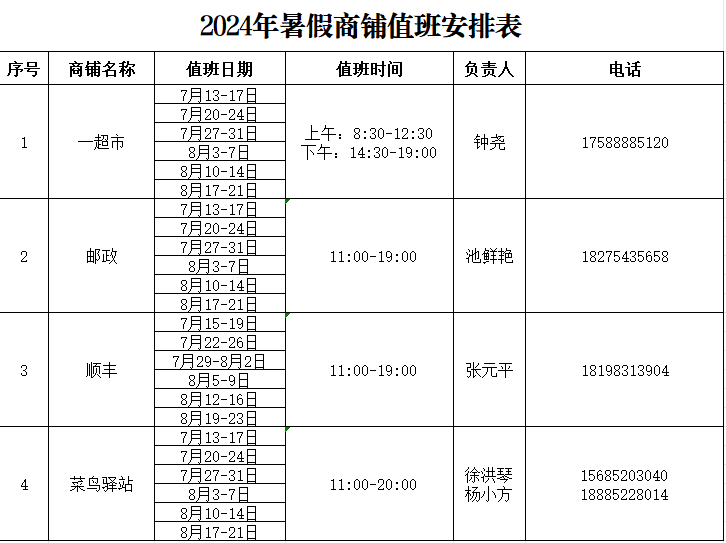 今年会官方网站暑假商铺值班安排表