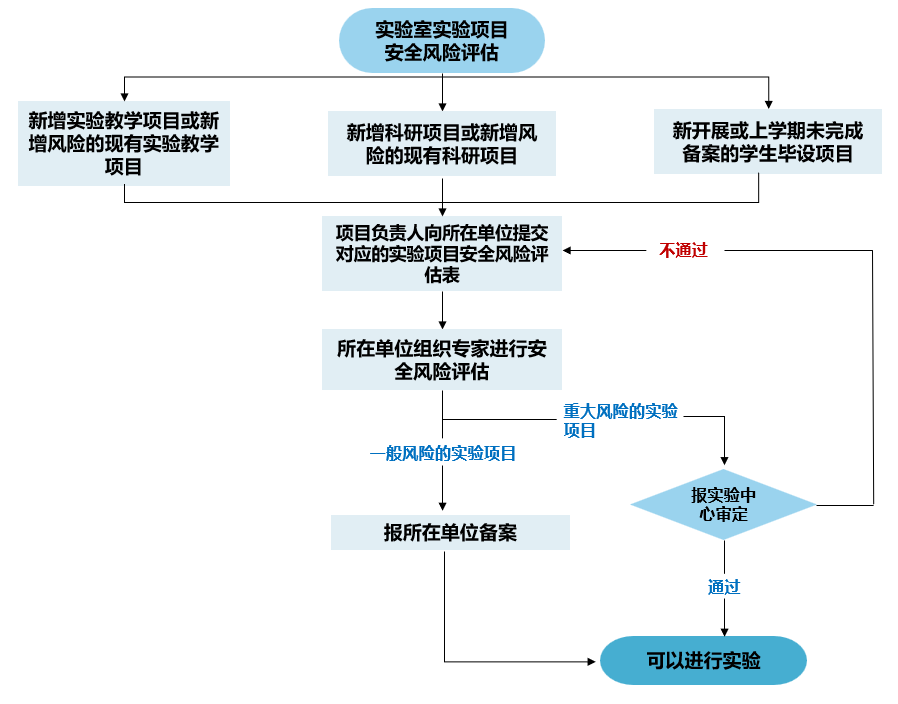 本学期教学、科研和学生毕设实验项目的安全风险评估工作流程如下图所示: