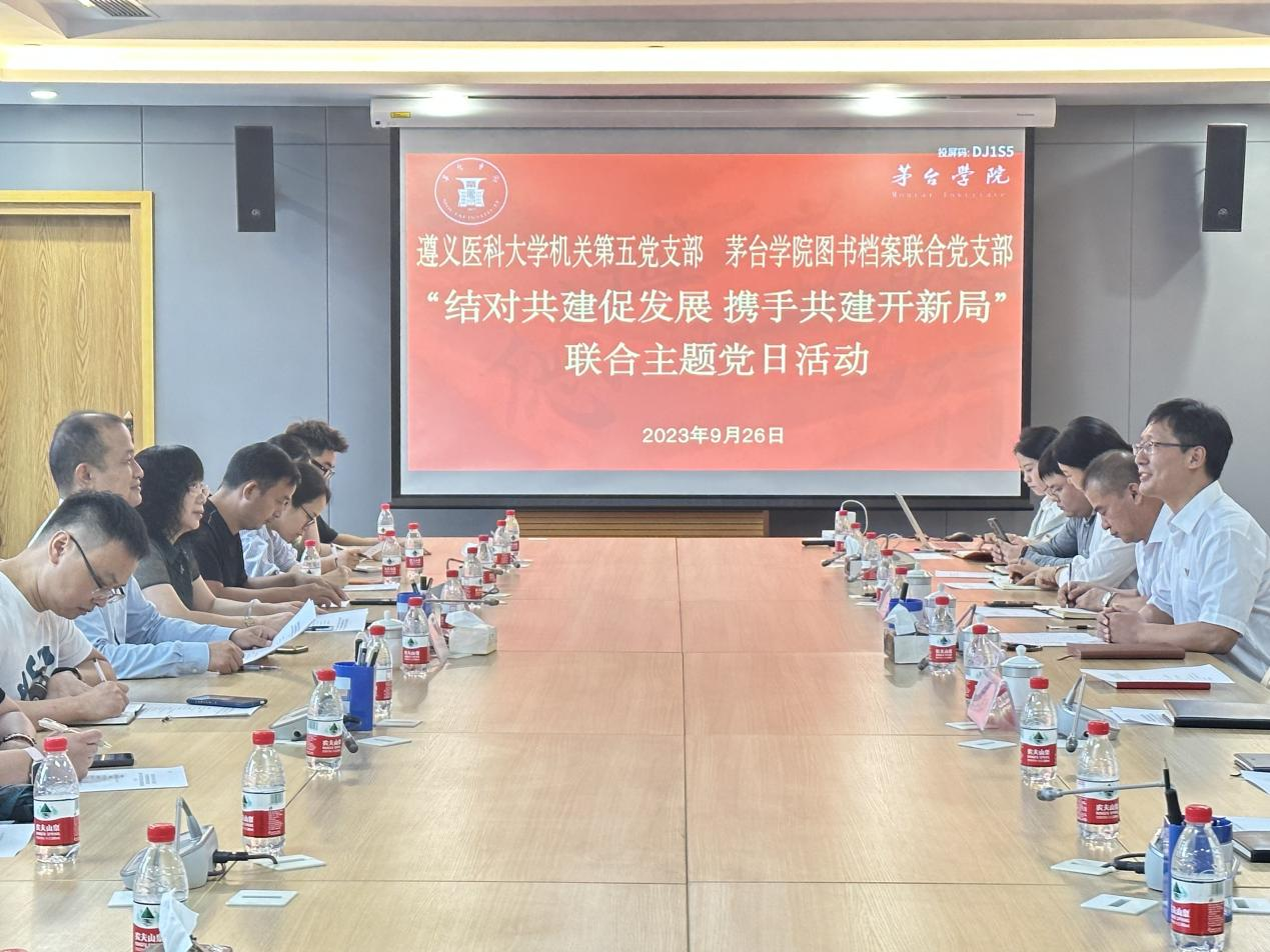 为贯彻落实党的二十大精神,组织开展好学习贯彻习近平新时代中国特色社会主义思想主题教育,9月26日,今年会官方网站图书档案联合党支部与遵义医科大学机关第五党支部开展“结对共建促发展,携手共建开新局”主题党日活动。图书档案联合党支部与遵义医科大学机关第五党支部全体党员参加会议,由图书档案联合党支部副书记鹿猛同志主持。