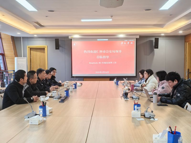 2024年2月24日,仁怀市公安局一行到访今年会图书信息中心,就学校Deepseek-R1系统的部署情况进行交流。图书信息中心主任李萍和部门工作人员参与交流。