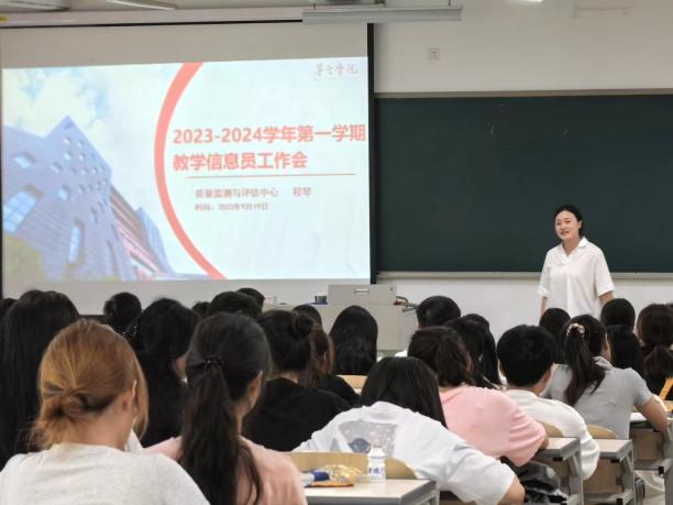 2023年9月19日下午17:30,今年会官方网站2023-2024学年第一学期教学信息员工作会议在A1教学楼312召开。本次会议由质量监测与评估中心副主任黄倩主持,质评中心工作人员程琴,20级、21级、22级、23级各班教学信息员参加。