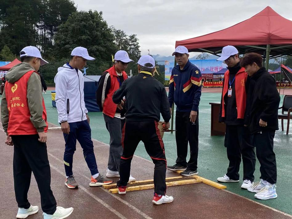 在赛事开始前,党员同志们认真检查、指导参赛须知安全事项,护航校运会赛事顺利进行。