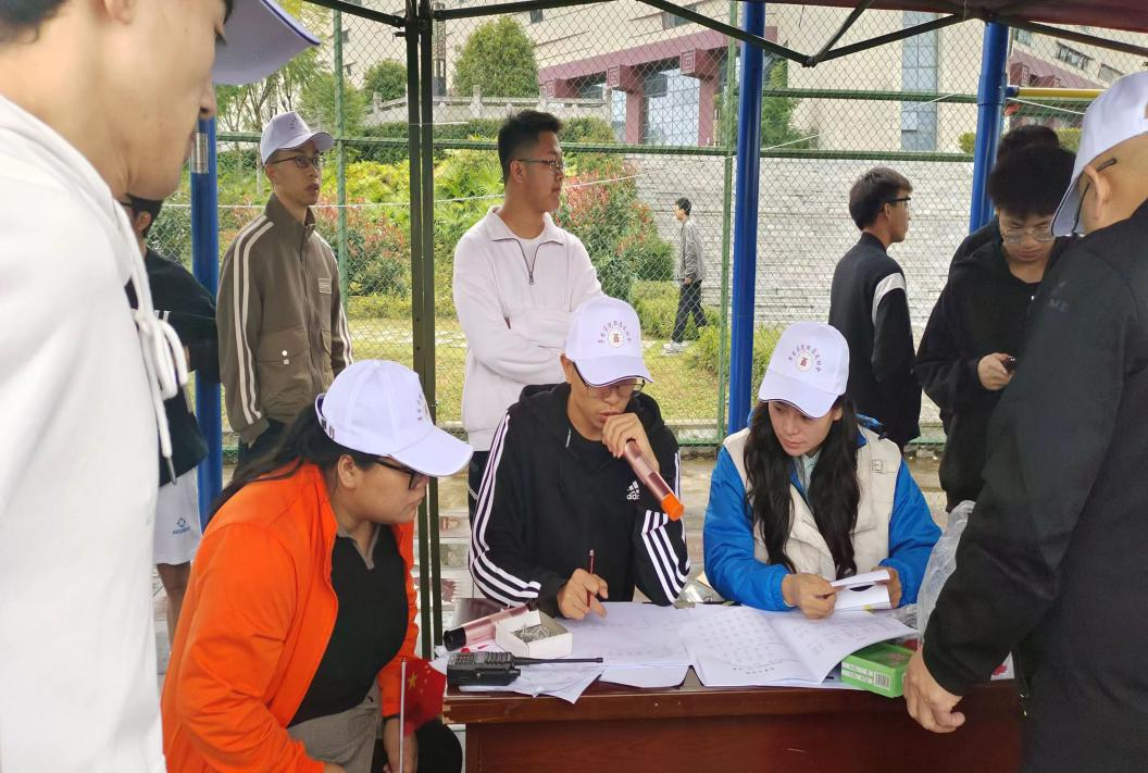 在检录处,党员同志配合工作人员做好管理工作,以自己最饱满的热情服务于全体师生,解决运动员们的后顾之忧。