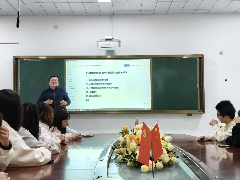 培训伊始,王振涛深入讲解了 AI 在短视频创意构思、脚本撰写方面的应用。他通过实际案例分析,向同学们展示了如何利用 AI 工具挖掘新颖的创意点,以及如何高效地生成逻辑清晰、富有吸引力的脚本。