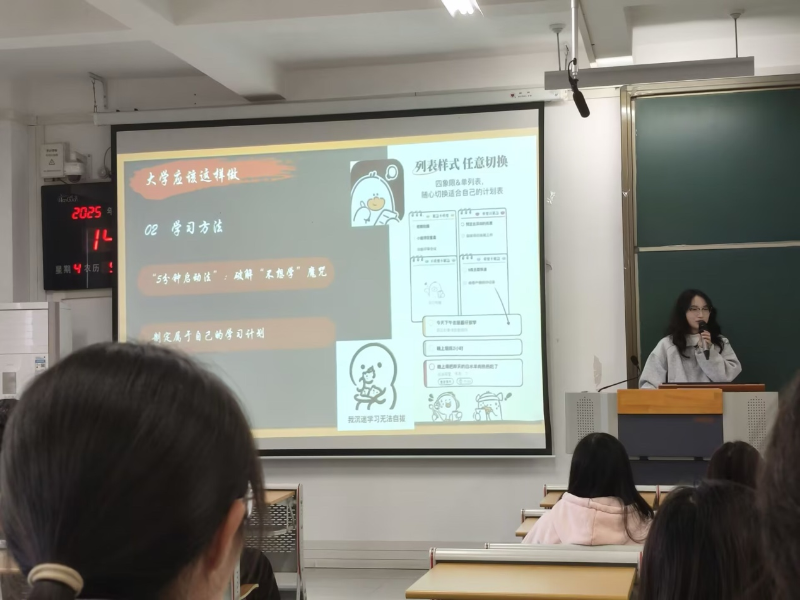 互动交流环节气氛热烈,同学们踊跃提问,“如何平衡专业学习与实习实践”“跨专业考研与本专业深造该如何选择”等问题接连抛出。两位学姐耐心回应,结合自身感悟给出具体建议,现场掌声不断,不少同学认真记录要点。