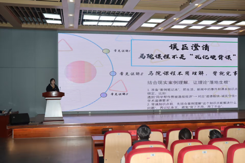 随后进行经验分享环节。市场营销233班的母微微同学聚焦思政类课程复习方法,分享了“框架梳理+案例结合+热点关联”的学习模式,建议同学们通过构建知识体系图厘清理论脉络,结合时政热点深化理解,助力同学们攻克思政课程复习难点。