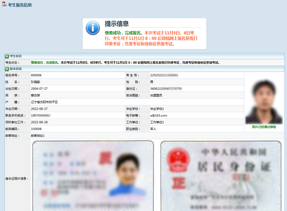 ①.资料修改:根据审核结果提示修改错误信息,重新提交报名信息等待再次网上审核。