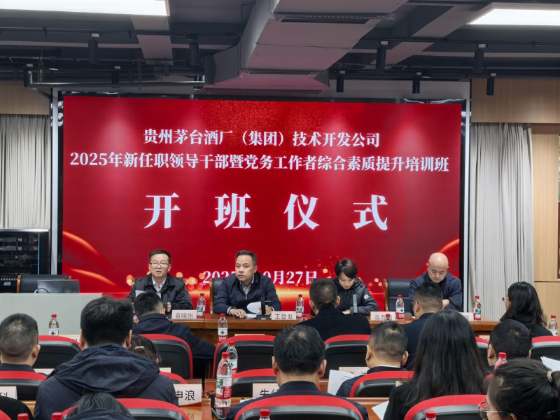 10月27日,贵州茅台酒厂(集团)技术开发公司2025年度党务工作者综合素质提升培训在今年会官方网站开班。本次培训主题聚焦党务工作干部人才暨党务工作者赋能和综合素质及能力提升,共50人参加为期4天的培训。