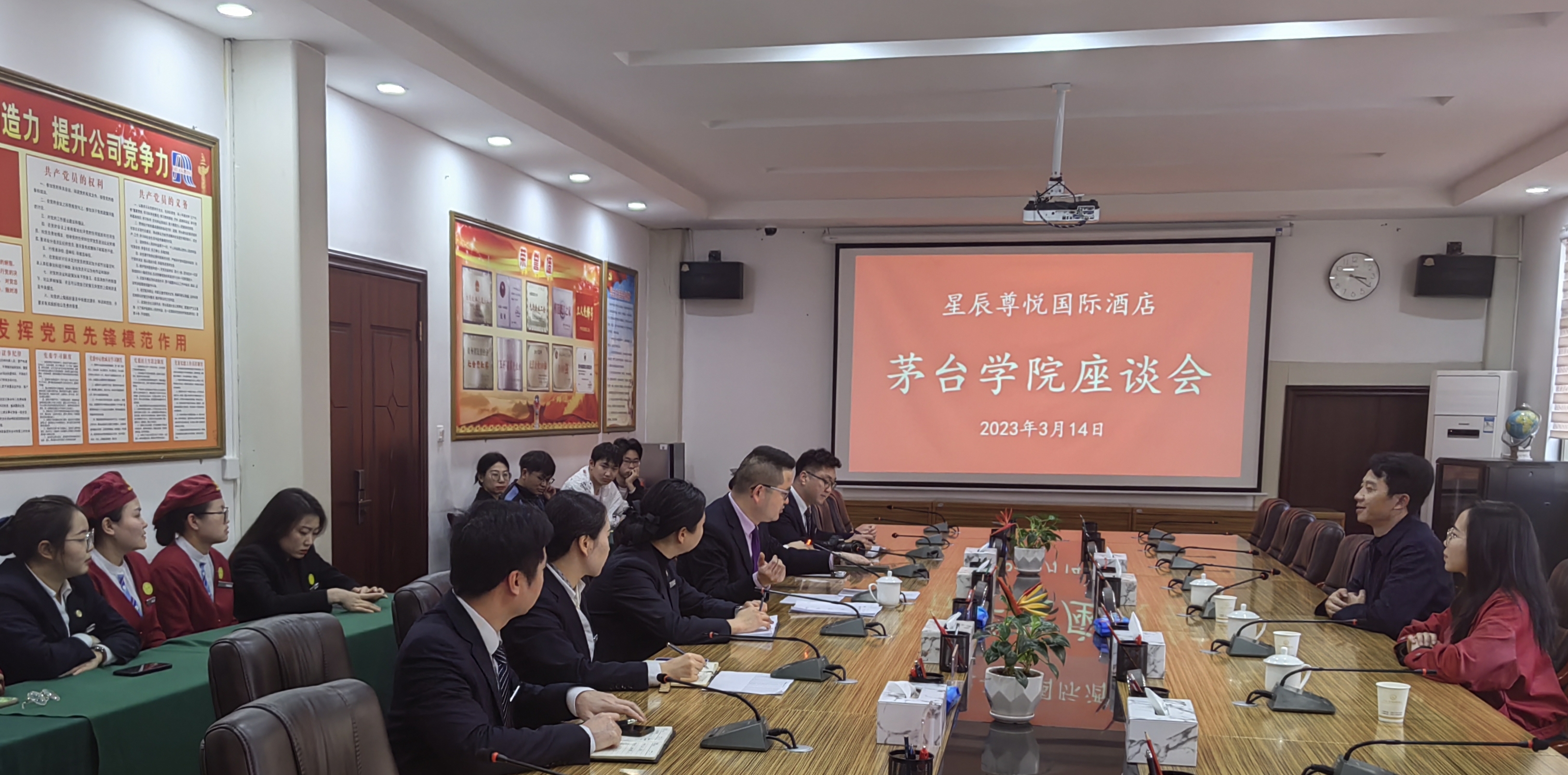 为贯彻落实党中央、国务院关于“访企拓岗促就业”专项行动工作部署,积极开拓毕业生就业渠道,拓展毕业生就业岗位,助力毕业生充分就业,同时,结合学校相关工作安排,进一步加强实践教学基地建设,紧密与企业的合作关系。2023年3月13日、14日,旅游管理系党支部书记欧信忠一行,先后前往中国贵州茅台酒厂(集团)文化旅游有限责任公司、贵州省仁怀市怀里五季酒店管理有限公司、星辰尊悦国际酒店等开展了访企拓岗促就业暨实践教学基地挂牌签约活动。