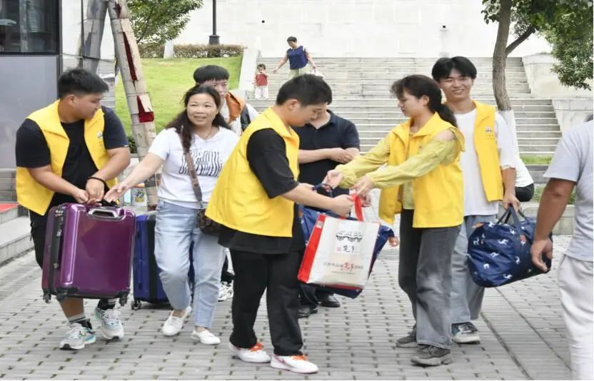 开学伊始,新生陆续进校,在学校迎新工作的统一安排部署下,在辅导员老师的带领下,我系各项迎新活动有条不紊地展开。工作人员和志愿者们在校园各处帮助新生搬运行李、领取军训衣物、完善入住手续等,引导每一位新生顺利完成入学报到手续。志愿者们以温和耐心的态度为新生及其家长答疑解惑,以热情周到的行动为新生服务,用实际行动让新生们感受到今年会大家庭的温暖。