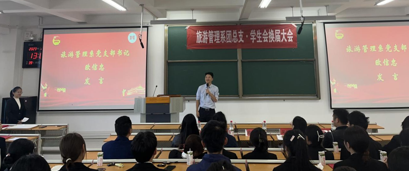 为进一步加强学生干部队伍建设,确保我系团学工作的连续性,10月31日,旅游管理系团总支学生会在A1-313教室顺利召开换届大会。大会由学会会秘书部部长杨萍主持,系党支部书记欧信忠、副书记吴叔娥,系团总支书记熊亚,全体辅导员、团总支学生会成员参加了会议。