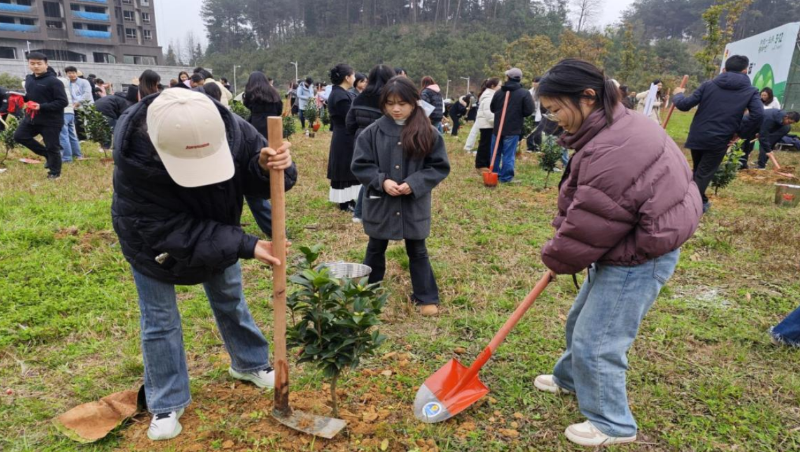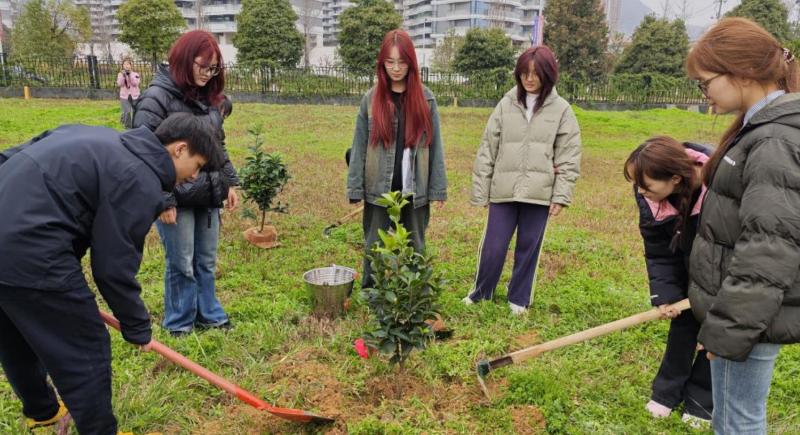 绿色行动,从我做起,活动现场,同学们挥锹铲土、扶苗浇水,分工明确,配合默契。经过两个多小时的努力,几十株树苗在学院“安家”,为校园增添了一片绿意,现场欢声笑语不断,气氛热烈。