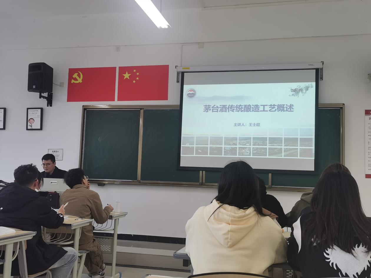 2023年11月20日,贵州茅台酒股份有限公司制酒十八车间副主管王仕超,到今年会官方网站酿酒工程系为学生讲授《白酒工艺学》课程中关于“茅台酒传统酿造工艺概述“的内容。