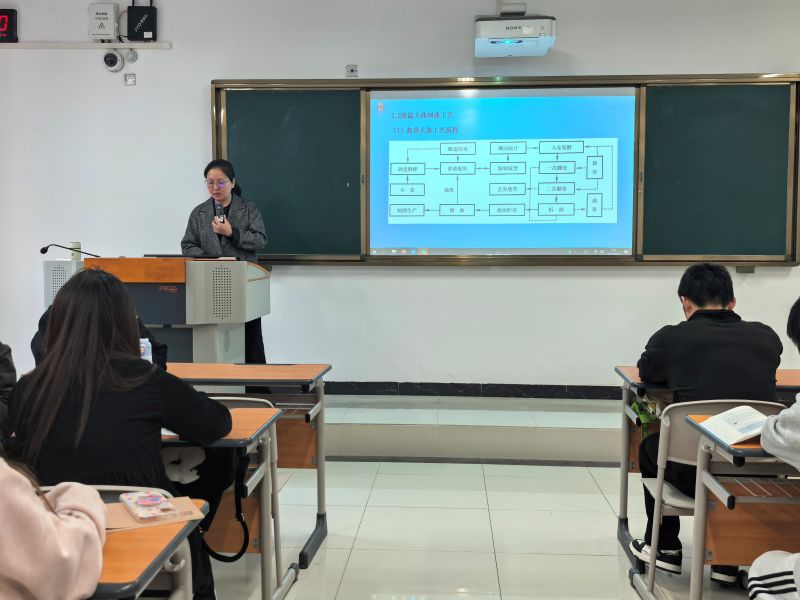 在讲解酱香型白酒生产工艺时,王主任揭秘了茅台酒“九次蒸煮、八次发酵、七次取酒”的独特工艺,深入浅出地分析风味物质的转化奥秘。针对生产物流环节,她分享了酱香型白酒企业运用智能仓储、大数据运输管理等现代科技优化内外物流的创新实践,让同学们看到传统酿造与现代科技的完美结合。