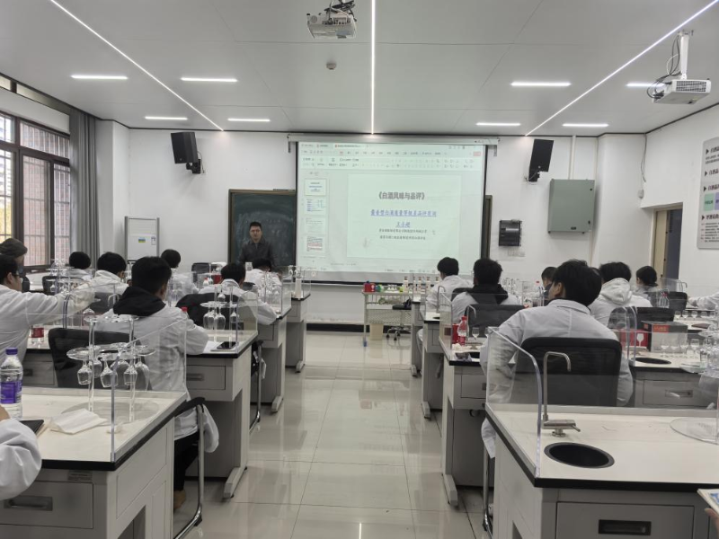讲座中,王仕超副主管以深厚的行业积淀和专业素养,为同学们拓展系统的知识体系视野。他从酱香型白酒独特的质量风格特征切入,详细拆解其 “酱香突出、幽雅细腻、酒体醇厚、回味悠长” 的核心特质;随后围绕酿造工艺特点与完整流程展开讲解,从制曲、下沙、发酵到蒸馏、陈酿等关键环节,层层剖析工艺密码中蕴含的科学原理与匠心传承,为同学们后续开展质量等级差识别筑牢理论根基。