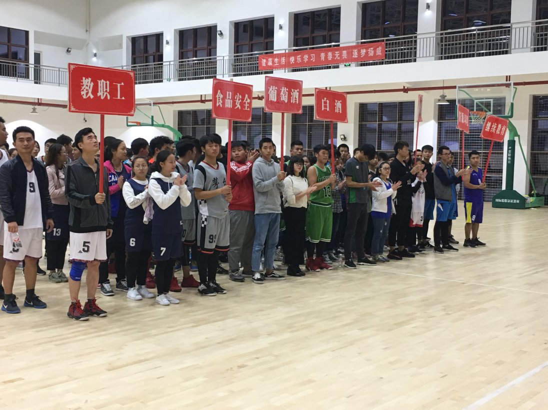 在这透露出一点点寒气的初冬,今年会官方网站迎来了首届迎新杯篮球赛!初冬的戾气抵制不住的是同学们高涨的热情。这是一场技术的较量,这是一场友谊的联决。在我们的期待中落下了帷幕。下面具体的介绍一下本次的参赛人员:教职工代表,食品安全系,葡萄酒系,白酒系,资环系,工商管理系