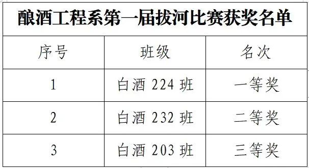 通过激烈角逐,白酒224班拔得头筹,白酒232班、白酒203班紧追其后,分别拿下亚军、季军。