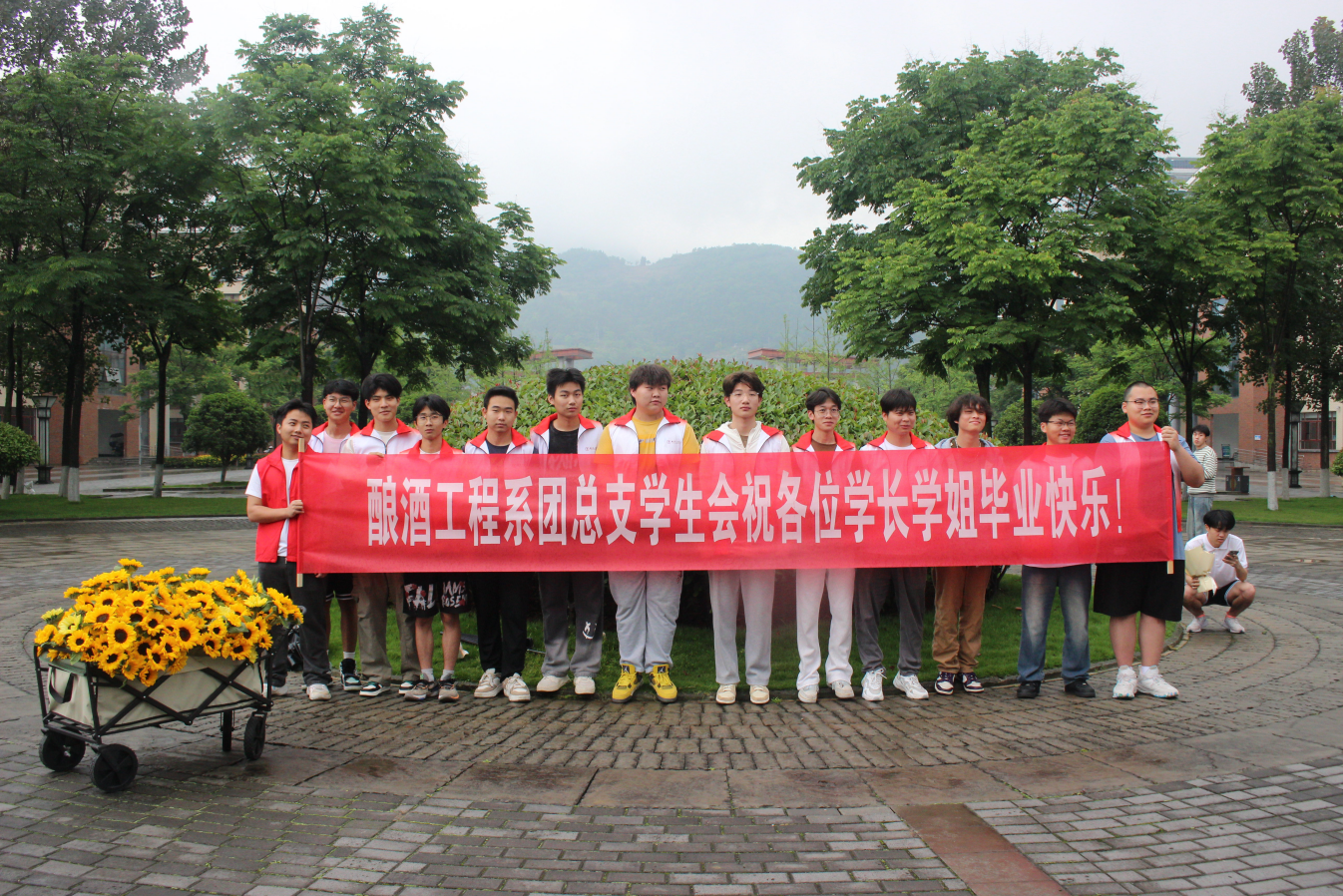 活动当天,酿酒工程系团学组织的志愿者提前到达拍摄地点并布置现场,自发地为老师、同学们充当摄影师,用镜头记录下他们青春的轨迹。集体合影环节,志愿者为确保每个人都能出现在这张珍贵的集体记忆中,认真清点人数并整队合影。合影的最后,酿酒工程系的老师和志愿者为即将离校的学子们送上寓意“未来可期、前程似锦”的向日葵和真诚的祝福。