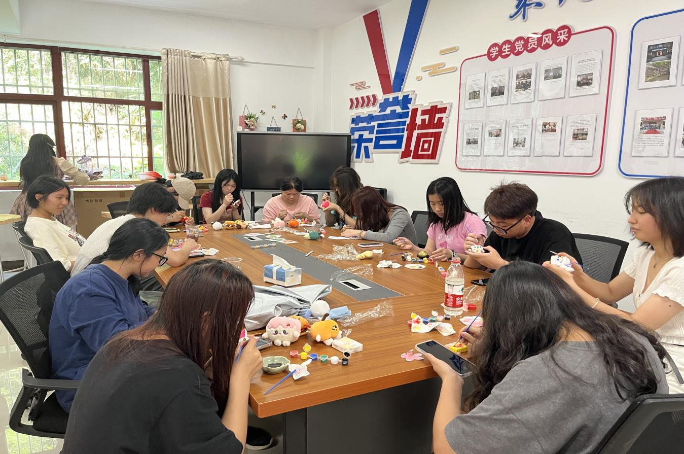 执笔绘青春——DIY石膏娃娃环节,同学们认真挑选心仪的石膏娃娃,在细致的画笔下,原本纯白的娃娃拥有了色彩,变得熠熠生辉。这些色彩不仅是同学们内心世界的投影,也是他们对未来憧憬的象征。笔尖触碰的瞬间不仅是色彩的流转,更是心灵的交流,整个绘画过程是充满想象力和创造力的过程,同学们在描绘石膏娃娃时,不只是在复制一个物体的外观,更是在用自己的理解和情感去诠释它。