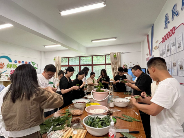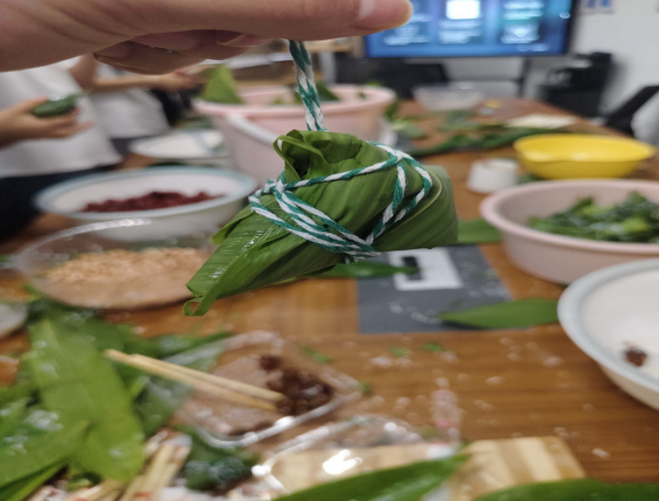 活动现场热闹非凡,桌上摆放着糯米、粽叶、蜜枣、红豆等包粽子的食材。师生之间互相交流,细心清洗每一片粽叶,认真包好每一个粽子。包好的粽子味道各不相同,咸粽以包裹火腿、肉类等馅料为主,味道浓郁,口感丰富;甜粽则以红枣、豆沙为主,香味扑鼻,糯滑可口。
