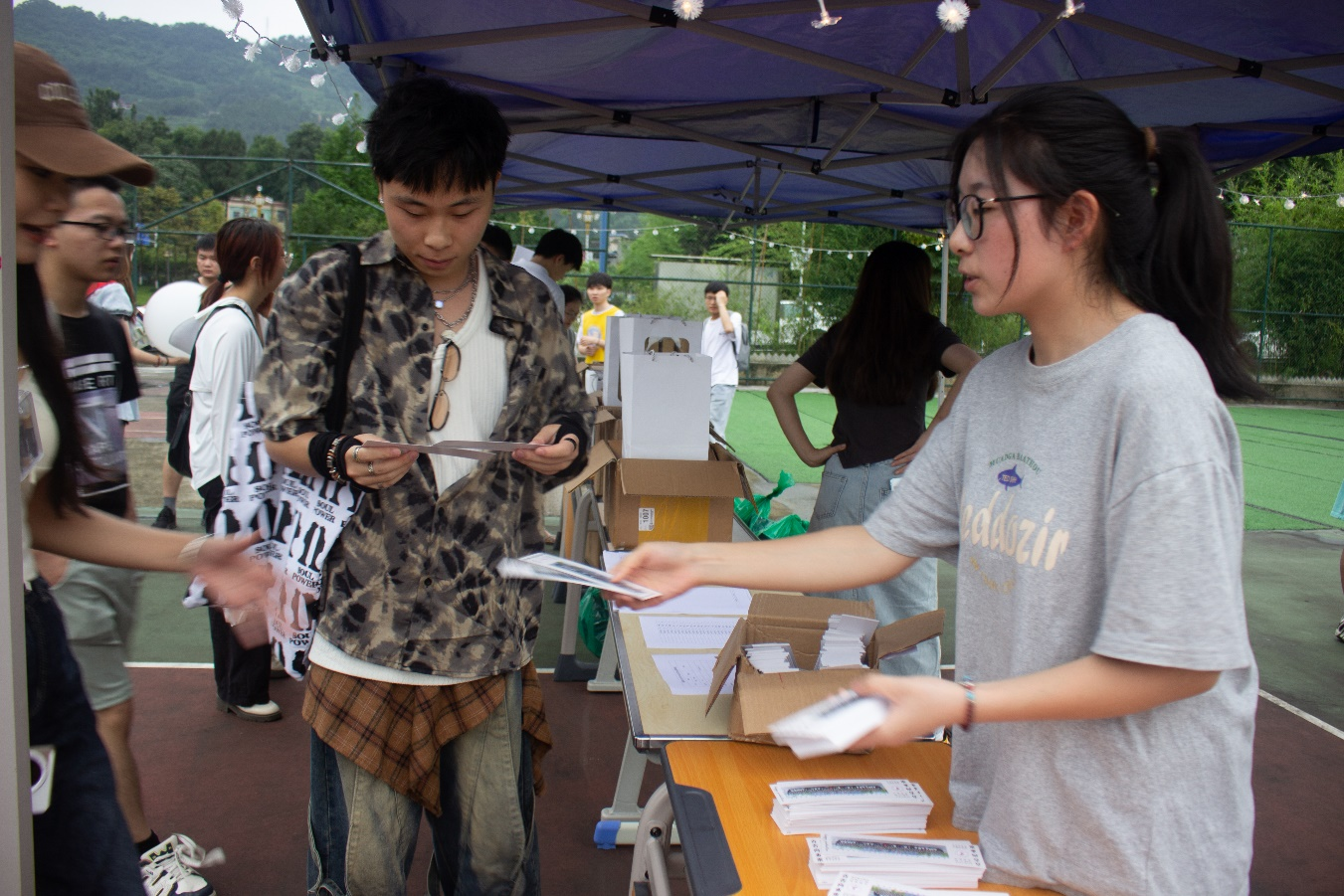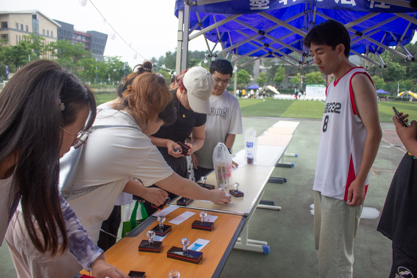入场前,工作人员将带有毕业生合照的入场券发给同学们,引导他们在入场券背面印下专属印章,留作毕业纪念。在活动现场,为2024届毕业生精心准备了戒指、书签、U盘等毕业纪念品,传递了学校对毕业生的关怀,营造了温馨、愉快的毕业离校氛围。