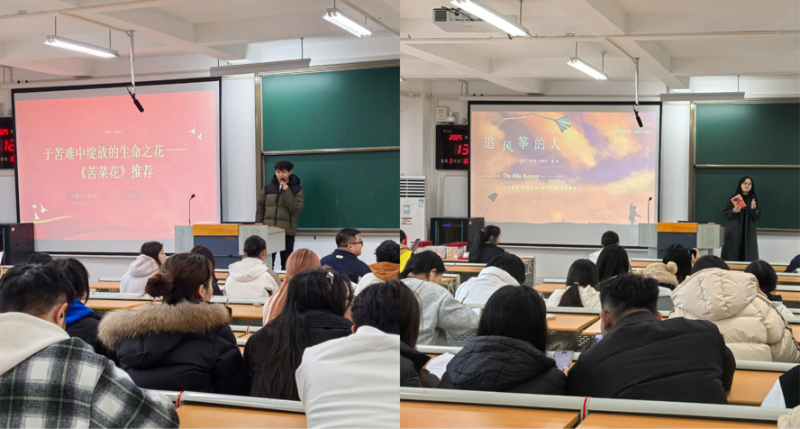 本次读书分享会以 “品读红色经典,传承精神力量” 为核心导向,紧扣时代脉搏,聚焦思想引领。活动中,同学们以 PPT 展示为主要形式,围绕红色经典书目及积极向上的优秀读物,深入阐释作品蕴含的思想精髓、红色基因与时代价值,结合自身学习生活实际分享感悟体会,传递正能量。分享过程中,同学们各抒己见、畅所欲言,既有对《觉醒年代》《苦菜花》等红色经典的深度剖析,回顾革命历程、感悟初心使命;也有对《我与地坛》《追风筝的人》等文学名著的精神解读,探寻人生真谛、汲取奋进力量,充分展现了当代青年学生扎实的知识储备、良好的表达能力和昂扬向上的精神风貌。